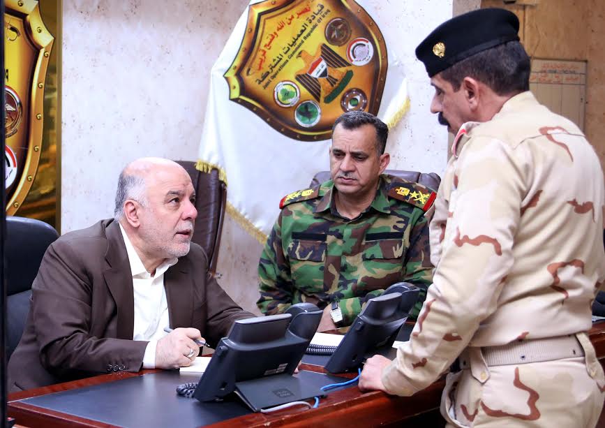 اطلعَ رئيس مجلس الوزراء القائد العام للقوات المسلحة حيدر العبادي، امس الاول الجمعة، على سير معارك عمليات قادمون يا نينوى وتقدم قواتنا البطلة في جميع المحاور، مؤكدا ان “النصر العسكري النهائي اصبح باليد وقواتنا البطلة تتقدم من جميع المحاور في عملية تحرير نينوى”. وذكر بيان لمكتب العبادي نقلته وكالة {الفرات نيوز} امس ان “رئيس الوزراء زار قيادة العمليات المشتركة واستمع لتقارير القادة العسكريين والامنيين ومناقشة الخطط الكفيلة بتحقيق النصر على عصابات داعش الارهابية مع الحفاظ على ارواح مقاتلينا الابطال والمدنيين”. واكد القائد العام للقوات المسلحة بحسب البيان ان “النصر العسكري النهائي اصبح باليد وقواتنا البطلة تتقدم من جميع المحاور والعصابات الارهابية تشهد انكسارا في صفوفها مشيرا الى وضع الخطط المناسبة واصدار التوجيهات اللازمة التي ستساهم بالاسراع بحسم المعركة على عصابات داعش الارهابية”.