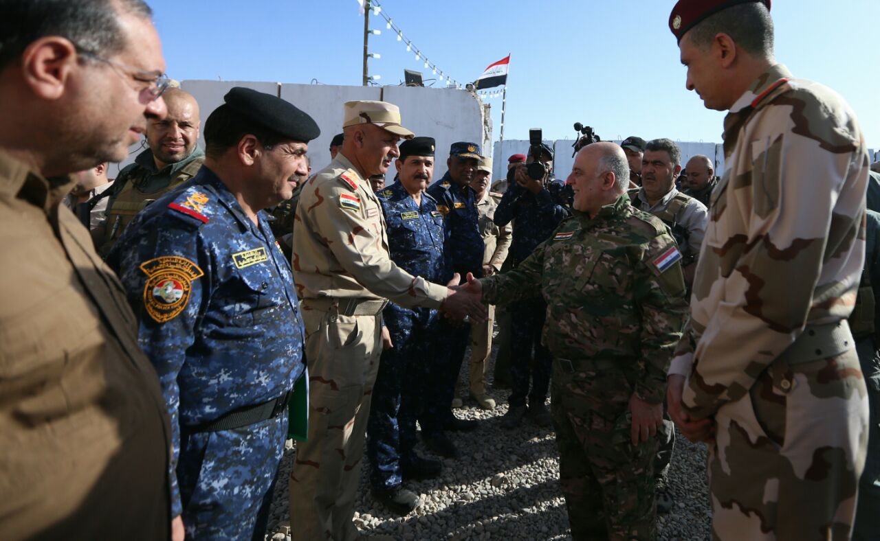 عقدَ رئيس الوزراء القائد العام للقوات المسلحة، حيدر العبادي، امس الاثنين، اجتماعات ميدانية مع القادة العسكريين في الموصل. وذكر بيان مقتضب لمكتبه، نقلته وكالة {الفرات نيوز} ان “العبادي عقد اجتماعات ميدانية مع القادة العسكريين في الموصل، فيما تفقد المقاتلين في الخطوط الامامية”. وكان رئيس الوزراء القائد العام للقوات المسلحة، حيدر العبادي وصل، امس الاثنين،الى القطعات العسكرية المشاركة في عمليات تحرير الموصل. يذكر إن معركة تحرير الموصل انطلقت في 17 من تشرين الاول الجاري، بمشاركة القوات الأمنية بمختلف صنوفها والبيشمركة والحشد الشعبي، وحققت القوات المشاركة تقدما كبيرا بتحريرها العشرات من القرى والمناطق في محاور التقدم. وكان المتحدث باسم الحشد الشعبي النائب احمد الاسدي، أعلن في 29 من تشرين الأول الجاري، انطلاق الصفحة الثانية من عمليات تحرير مدينة الموصل في المحور الغربي من المدينة. فيما أعلنت وزارة الدفاع، إن قطعات المحور الشمالي، شرعت بتنفيذ المرحلة الثانية من أهدافها في معركة قادمون يا نينوى. من جانبها أعلنت خلية الإعلام الحربي التابعة إلى قيادة العمليات المشتركة، تقدم قوات مكافحة الإرهاب والجيش، بثلاثة محاور نحو الساحل الأيسر من مدينة الموصل، لتحريره من عصابات داعش.