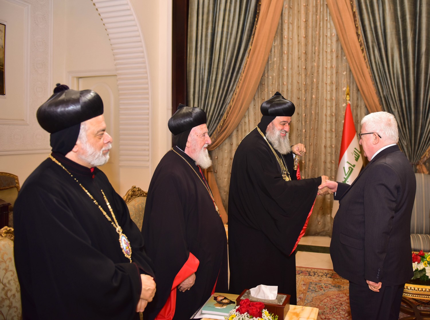 بحثَ رئيس الجمهورية فؤاد معصوم مع قداسة مار اغناطيوس افرام الثاني بطريرك انطاكيا وسائر المشرق الرئيس الأعلى للكنيسة السريانية الارثذوكسية اوضاع المسيحيين في البلاد. وذكر بيان رئاسي نقلته وكالة كل العراق [أين] ان “معصوم استقبل في قصر السلام ببغداد بطريرك انطاكيا وسائر المشرق الرئيس الأعلى للكنيسة السريانية الارثذوكسية، على رأس وفد ضم المطران مار موريس يعقوب النائب البطريركي والمطران سويريوس حاوا رئيس الطائفة في بغداد والبصرة، وتم خلال اللقاء التباحث حول مجمل الاوضاع السياسية واهمية الدور التاريخي للمسيحيين السريان في خدمة البلاد ضمن الطيف العراقي المتنوع”. وأكد الرئيس معصوم على حاجة العراقيين للوحدة والمصالحة المجتمعية كونها تمثل احدى الركائز في ترسيخ الاستقرار والوئام، والتطلع إلى مستقبل مزدهر للبلاد، مشدداً على أن المسيحين مكون أصيل كان له الدور الكبير في بناء حضارة العراق، مجددا ادانته لاستهداف المسيحيين والاقليات الأخرى من قبل تنظيم داعش، داعيا إلى تلبية مطالبهم المشروعة. من جانبه ثمن قداسة مار اغناطيوس، بحسب البيان، دور الرئيس معصوم في تحقيق الوحدة الوطنية والتناغم بين الاطياف كافة، شاكرا اهتمامه بدعم المطالب المشروعة لجميع الاطياف، بضمنها المسيحيون الذين عاشوا في العراق منذ الاف السنين وشاركوا في بناء وتطوير البلاد.
