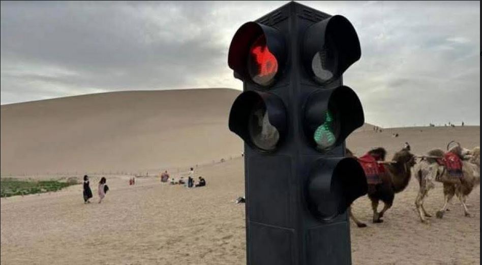وضعت السلطات الصينية إشارات مرور للجمال وسط الصحراء في مناطق جبل مينغشا وكريسنت سبرينج ذات المناظر الخلابة بصحراء كومتاج بمقاطعة قانسو شمال غرب الصين. ويعد ركوب الجمال هواية شعبية، حيث تستخدم السلطات المحلية إشارات مرور الجمال لتجنب الاختناقات المرورية.وخلال شهر ايار، يتوافد الآلاف من الأشخاص على هذه الأماكن السياحية الطبيعية ويمارسون مجموعة من الأنشطة، وأشهرها بلا شك ركوب الجمال، وفي عام 2023، كان هناك حوالي 2400 جمل متاح للركوب، إضافة إلى عشرات الآلاف من السياح يومياً في المناطق ذات المناظر الخلابة لجبل مينغشا وحدها، ما أدى إلى مشاكل ازدحام مروري وتوصلت السلطات المحلية إلى حل مبتكر، ألا وهو إشارات مرور الجمال.وعلى الرغم من غرابة استخدام إشارات المرور في وسط الصحراء، إلا أنها منطقية إلى حد ما، وفقاً للسلطات إذ شهد عام 2023، في اليوم الأول من شهر ايار، استقبال 10 آلاف زائر بجبل مينغشا وارتفع عددهم إلى 20 ألفاً في الأيام التالية من عطلة الربيع، سار العديد منهم على طول طريق الحرير القديم، لكن بضعة آلاف اختاروا الاستمتاع بالمناظر الطبيعية على ظهور الجمال، ما أدى إلى ازدحامات مرورية على طول الطريق الشعبي.ومن خلال تركيب إشارات المرور التي تشير إلى توقف الجمال للسماح للمشاة بالعبور، تم حل المشكلة جزئياً، وعندما يكون ضوء الجمل الأخضر مضاءً، يمكن للجمال المرور، عندما يضيء ضوء الجمل الأحمر، تتوقف الجمال للسماح للمشاة بالمرور أولاً.