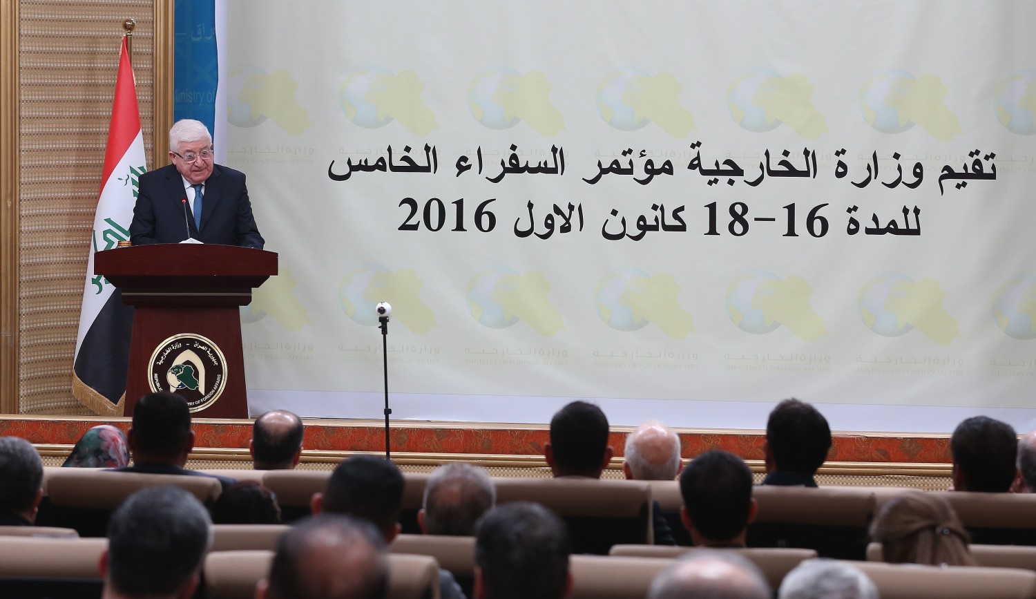 اكدَ رئيس الجمهورية فؤاد معصوم، ان تعاون العراق مع أي جهد يصب في الخلاص من الارهاب محكوم بحفظ امن البلاد ووحدة اراضيها. وقال معصوم خلال كلمته في مؤتمر السفراء الخامس، الذي عقد بمبنى وزارة الخارجية انها “مناسبة مهمة لمراجعة المتحقق والمأمول من السياسات العامة في إطار علاقاتنا الدولية وما نطمح اليه على هذا المستوى، وبالتأكيد أنكم تقدّرون معنا أهمية وخطورة العلاقات الدولية التي تزداد كلما تقدمت البشرية في وما تستدعيه من تعاون وشراكات وتفاعلات بين أعضاء الاسرة الدولية”. وأضاف “نحن في عالم لم يعد فيه الانغلاق ممكنا ونحن نعمل من أجل ترسيخ بناء دولتنا الديمقراطية الحرة المستقلة، ولعل واحدة من هذه الأسس المهمة هي صلتنا وعلاقاتنا مع الآخرين من شركائنا وجيراننا في هذه المنطقة الاستثنائية في العالم ومن مجموع اركان المجتمع الدولي”. واستدرك رئيس الجمهورية “لكن مما هو جدير بالاعتبار ونحن نراجع ونخطط لعملنا الدبلوماسي وعلاقاتنا الدولية، ان ندرك بان العراق هو بلد محوري وأساسي سواء في ظرفه الراهن كظرف بناء وتفاعل اقتصادي وإمكانات استثمار وعمل مشترك في حقول مختلفة او بدوره الاستراتيجي في مواجهة ومحاربة الإرهاب وهي حرب تهم حاضر ومصير العالم بأسره وليس العراق والمنطقة التي نحيا فيها تحديداً”. وتابع “هذان عاملان مهمان في صياغة ورسم دبلوماسيتنا وصنع وتنظيم علاقاتنا الدولية، وهما عاملان محفزان لنشاط وحيوية عملكم الدبلوماسي حيثما كنتم ، مثلما هما عاملان يحملانكما كممثلين عن بلدكم ويحملاننا جميعا مسؤوليات مضاعفة من اجل جهود اكبر لتوسيع افق التعاون كلما كانت هناك فرصة ممكنة لهذا العامل بما يخدم العلاقات المشتركة ويعزز الامكانات التقدم والبناء وتحقيق الامن والسلام”. وبين معصوم “احيانا كثيرة يكون من مسؤوليات الدبلوماسية العمل من أجل خلق الفرص حتى حين لا تكون الفرص في الأفق ونجاح العمل الدبلوماسي هو في فتح النوافذ وفي خلق فرص التعاون والصداقة، حيث لم تتقدم الحياة عبر التاريخ من دون تنمية الصادقة والتعاون والعمل المشترك بما يخدم الإنسان وحضارته وامنه وسلامه، تساعدكم في هذا العمل فلسفة دولتنا الجديدة القائمة على التعاون مع الجميع، كلما كان هذا التعاون معتمدا على مبادئ المصالح المشتركة وضامنا لحسن التعايش مع الشعوب ومعززا للامن والسلام والاستقلال”. وتابع رئيس الجمهورية “نحتاج الى العالم والآخرون مثلنا يحتاجون الينا ايضا ومن دون عمل حثيث لتعزيز فرص التعاون والعمل المشترك لا نستطيع تلبية هذه الحاجيات”، مشيرا إلى ان “الجانب الأساس في انجاز هذا العمل يظل منوطاً بكم وبحيوية المبادرات التي تنهضون بها بالانطلاق من الأساسيات العامة للدولة في البناء ومحاربة الارهاب وتعزيز وحدة واستقلال العراق”. ونوه الى ان “العراق وكما اسلفنا يعيش في قلب منطقة ساخنة يمر بها الجميع في ظروف استثنائية بما جعل منها مركزا لتجاذبات إقليمية ودولية شديدة الحساسية ليس بالنسبة لنا فقط وانما للعالم ككل، ووسط هذه الظروف فإنما يقرر موقف العراق وينظم علاقاته بالجميع هو الموقف اساسا من الارهاب والعنف”. واكد ان “تعاوننا مفتوح مع اي جهد يصب في تخليص بلدنا والمنطقة والعالم من آفة الارهاب وخطره الذي يهدد الجميع، وهذا التعاون محكوم بما يحفظ أمن واستقلال ووحدة أراضينا وأمن واستقلال ووحدة اراضي جميع شركائنا في المنطقة”. وشدد رئيس الجمهورية على ان “هذين ركنين أساسيين في تنظيم علاقاتنا وتعاوننا مع الجميع، وهما ركنان تكفلهما جميع الشرائع التي تنظم العلاقات الايجابية بين مختلف أطراف الأسرة الدولية وتجب مراعاتهما في هذه الحساسية المتفاقمة في منطقتنا في ظرفها الراهن”.