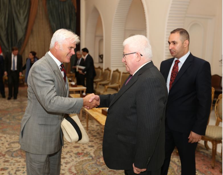 شدّد رئيس الجمهورية فؤاد معصوم على ضرورة إنجاح المصالحة الوطنية رغم وجود الإرهاب والأزمة المالية. وذكر بيان رئاسي إن “رئيس الجمهورية فؤاد معصوم استقبل في قصر السلام ببغداد وزير شؤون التنمية الدولية البريطاني ديزموند سوين والوفد المرافق، وفي مستهل اللقاء رحب الرئيس بالوفد الضيف، متمنيا لهم ولبرنامج الزيارة النجاح وطيب الإقامة في بغداد ، وجرى استعراض لمجمل التطورات الاقتصادية ، والسياسية ، والأمنية ، وجهود الإصلاحات ، ومساعي المصالحة الوطنية”. وأكد الوزير البريطاني على أهمية الدور الكبير المبذول من قبل رئاسة الجمهورية في هذه المسارات، كما جرى حديث موسع بشأن الاستعدادات والتحضيرات لمؤتمر إعادة إعمار العراق. وأكد رئيس الجمهورية بهذا الصدد أهمية العمل الجاري مع جميع الأطراف الاقليمية والدولية الصديقة؛ من أجل تأمين المساعدة لانجاح أعمال المؤتمر والوصول إلى أهدافه المنشودة، خصوصا في هذه الظروف التي يخوض فيها العراق حربا ضد الارهاب، وفي ظل مشكلات مالية واقتصادية معروفة. من جانبه أثنى سوين على أهمية الحاجة إلى هذا المؤتمر وضرورة نجاحه، مشيرا إلى دعم المملكة المتحدة للمشروع، واستعدادها رفع مساهماتها في اعمار العراق. هذا وحضر اللقاء رئيس ديوان رئاسة الجمهورية نصير العاني ، ورئيسة دائرة أوروبا في وزارة الخارجية صفية السهيل، وسفير المملكة المتحدة في بغداد فرانك ريموند بيكر.