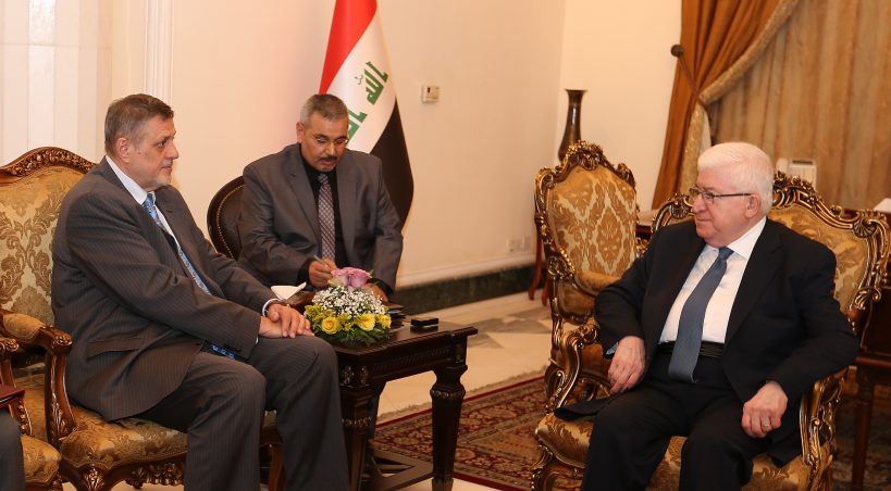 اجرى رئيس الجمهورية فؤاد معصوم مباحثات مع الممثل الخاص للأمين العام للأمم المتحدة في العراق يان كوبيتش تناولت المستجدات السياسية التي يشهدها البلد. وذكر بيان رئاسي ان معصوم “استقبل في قصر السلام ببغداد امس الممثل الخاص للأمين العام للأمم المتحدة في العراق يان كوبيتش وبحث معه أهم المستجدات السياسية والامنية في البلاد والسبل الكفيلة بتخفيف الحساسيات الموجودة على الساحة، فضلا عن جهود المجتمع الدولي لدعم العراق فيما يتعلق بملف النازحين واعادة الاعمار والحرب ضد الارهاب”. ونقل البيان عن معصوم تأكيده على “أهمية الجهود التي تبذلها الامم المتحدة لمساعدة العراق على المستويات السياسية والانسانية وفي بناء مؤسسات الدولة وتطويرها”. من جانبه جدد كوبيتش، بحسب البيان، تأكيده على “اهتمام الامم المتحدة بالعراق”، مؤكداً “استعدادها لمساندة العراقيين على جميع الصعد”، لافتا الى “ضرورة تضافر الجهود من اجل التقليل من الاحتقانات الموجودة والعمل على حل المشاكل التي تحدق بالعملية السياسية والديمقراطية”.