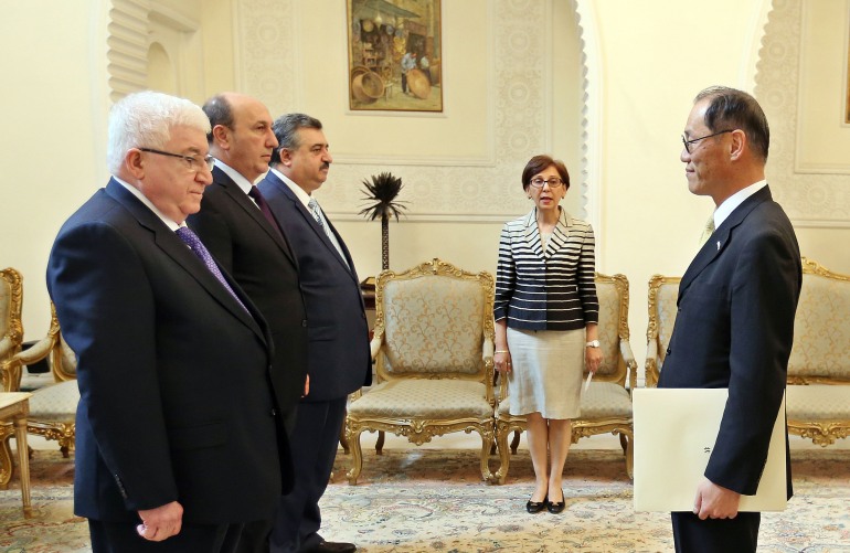 تسلّم رئيس الجمهورية فؤاد معصوم في بغداد ، امس الاثنين ، أوراق اعتماد سفير اليابان فوميو ايواي. وقال بيان لمكتب رئيس الجمهورية نقلته وكالة {الفرات نيوز} ، ان ” معصوم رحّب بالسفير الياباني الجديد ” ، مؤكدا استعداد العراق للتعاون الكامل مع اليابان. وأشاد رئيس الجمهورية بحسب البيان بالعلاقات الثنائية بين البلدين الصديقين ، مؤكداً ضرورة توسيعها وتنشيطها خدمة لمصلحة شعبي البلدين. وشدد معصوم على أهمية مساندة اليابان للعراق في حربه ضد الارهاب ، ودعم برامج التنمية المحلية.