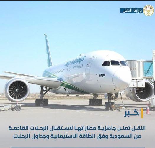 اعلنت وزارة النقل متمثلة بالشركة العامة لإدارة المطارات والملاحة الجوية العراقية عن جاهزيتها لاستقبال الرحلات القادمة من المملكة العربية السعودية، وفق الطاقة الإستيعابية وجداول الرحلات المخصصة في كافة مطارات العراق. وقالت الوزارة في بيان صدر عن المكتب الإعلامي: انه بدءا من حزيران المقبل ستكون هناك ثلاث رحلات اسبوعيا في ايام (السبت والثلاثاء والخميس)، بين مطاري النجف الاشرف والدمام، بناء على الطلب المقدم من قبل الجانب السعودي، بتسيير تلك الرحلات بين البلدين.وأضاف، ان عدد الرحلات الجوية بين البلدين حاليا يبلغ (10) رحلات اسبوعيا ، لكنها في الأوقات الاعتيادية تنخفض الى من ٥ _٦ أسبوعيا. ونوّه البيان بان الوزارة تعمل على اعداد دراسة الجدوى لإعادة تفعيل خط (الرياض_بغداد)، استناداً الى ما تم طرحه خلال مشاركة العراق في مؤتمر الإستدامة البحرية، الذي عقد العام الماضي في جدة. واشار البيان الى، ان رحلات الخطوط الجوية العراقية مستمرة الى مطاري المدينة وجدة بواقع (6_10) رحلات، لغاية تاريخ 5/14، فيما ستنطلق يوم 5/14 رحلة البعثة الخاصة بهيئة الحج والعمرة الى المدينة المنورة، استعداداً لموسم الحج، وفي 5/18 ستبدأ رحلات تسيير الحجاج الى المدينة، وفي 5/30 بإتجاه جدة.من جهه اخرى كشفت وزارة النقل ،عن مصادقة وزيرها رزاق محيبس السعداوي على الخطة التطويرية للملاحة الجوية في مناطق جنوب العراق وغربه. وقال مدير عام الشركة العامة لإدارة المطارات والملاحة الجوية الدكتور عباس البيضاني، إن الشركة طرحت خطة لتطوير الملاحة الجوية بمستوى تصميم عالٍ، من خلال توفير تغطية رادارية في المناطق الغربية وجزء من المنطقة الجنوبية.وأكد المدير العام حصول موافقة السيد الوزير على توفير هذه الرادارات وتنصيبها في تلك المناطق، من أجل استيعاب أكبر عدد ممكن من الطائرات العابرة للأجواء العراقية.ولفت الى أن الشركة باشرت خطة تأهيل المرافق الخدمية في صالات بابل ونينوى وسامراء في مطار بغداد الدولي.من جهه اخرى عقدت إدارة الخطوط الجوية العراقية اجتماعا مع ممثلين عن شركة Boeing الأمريكية لصناعة الطائرات بحضور مديري الأقسام المعنية لبحث عدة ملفات تتعلق بإدامة العمل المشترك واستمرار التعاون بين الشركتين لتطوير وتحديث أسطول الناقل الوطني.وبين مدير عام الشركة المهندس مناف عبد المنعم أهمية هذا الاجتماع الذي تم استنادا إلى توجيهات وزير النقل رزاق محيبس السعداوي لمراجعة فقرات العقد المبرم بين الشركتين وتسليم الطائرات الحديثة المتبقية بمختلف طرازاتها وحسب الجداول الزمنية الموضوعة لتحديث أسطول الخطوط الجوية العراقية.من جانبهم أكد فريق Boeing حرصهم على استمرار تقديم الدعم للخطوط الجوية العراقية لضمان التشغيل الأمثل للطرازات التي سلمت لها والطائرات الأخرى المقرر تسليمها لاحقا.