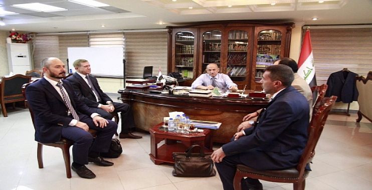 وافاد بيان لوزارة النقل، تلقت (العدالة) نسخة منه ان” وزير النقل كاظم فنجان الحمامي استقبل في مقر الوزارة ببغداد, وفدا روسيا متخصصا في مجال النقل الجوي، وبحث معه سبل تطوير واقع الطيران في العراق من خلال الاستفادة من الامكانات والخبرات الروسية”.واضاف ان” الحمامي استمع الى شرح مفصل عن الية العمل بهدف النهوض والتطوير للطيران العراقي الذي يسير اليوم بخطوات جدية من اجل النهوض في الاداء والخدمات التي تقدم للمسافرين، حيث طالب الوفد باعداد خطة عمل لغرض دراستها والاستفادة منها في عمل المطارات”.واكد الحمامي خلال اللقاء ان” الوزارة لديها العديد من المشاريع والاعمال ويمكن للشركات الروسيه ان تساهم فيها سيما اعادة تأهيل مطار الموصل بعد اتمام تطهيره من عصابات داعش وستكون فرصة جيدة للتواصل والعمل المشترك”.