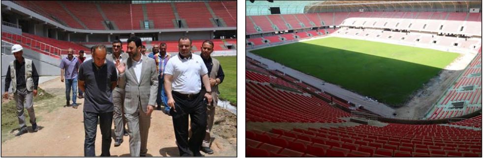 تفقد وزير الشباب و الرياضة السيد عبد الحسين عبطان الاعمال في موقع مدينة الحسين الرياضية في محافظة كربلاء المقدسة، للاطلاع على سير الاعمال الختامية والتشطيبية لملعب كربلاء الدولي سعة ٣٠ الف متفرج المؤمل افتتاح مرحلته الاولى في الثاني عشر من شهر أيار الجاري، كما عقد اجتماعا مع الكادر المتقدم بحضور رئيس اللجنة التحضيرية لحفل الافتتاح مستشار الوزارة لشؤون الرياضة الدكتور حسن الحسناوي للوقوف على اخر المستجدات وتذليل عدد من المعوقات لرفع الاداء والانتهاء من الجوانب الفنية في الوقت المناسب.